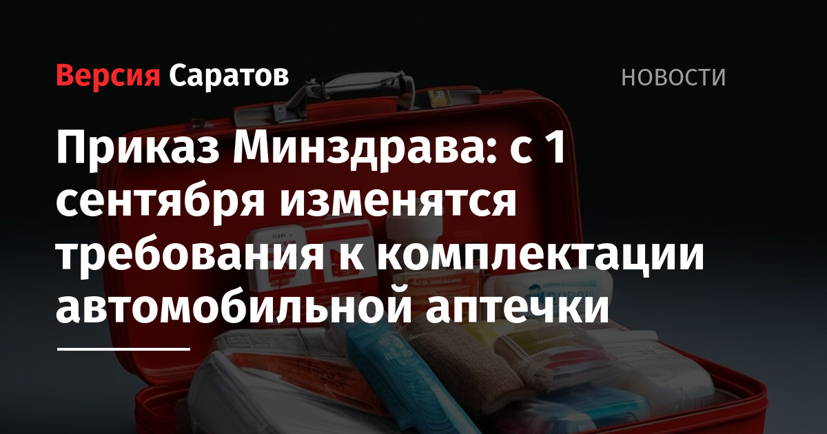 С 1 сентября 2024 года вступает в силу приказ Министерства здравоохранения РФ, который изменит требования к содержимому автомобильных аптечек для оказания первой помощи.