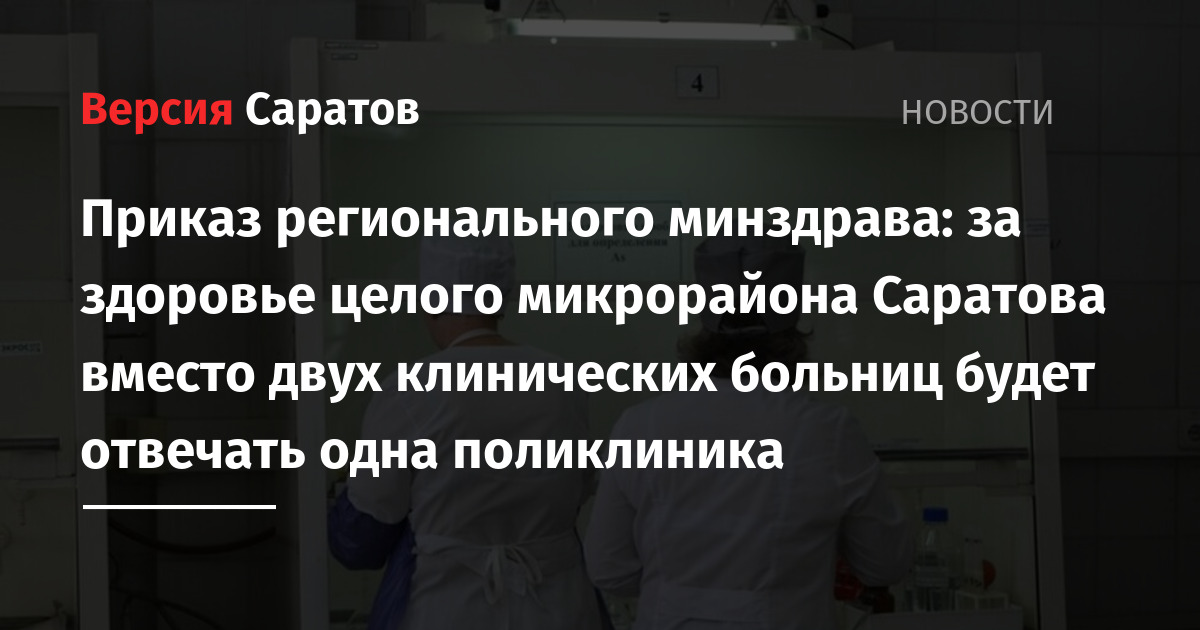 Приказ регионального минздрава: за здоровье целого микрорайона Саратова вместо двух клинических больниц будет отвечать одна поликлиника