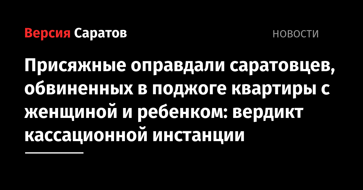 Присяжные оправдали саратовцев, обвиненных в поджоге квартиры с женщиной и ребенком: вердикт кассационной инстанции