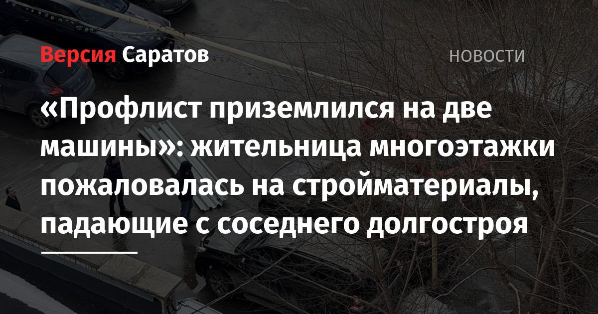 «Профлист приземлился на две машины»: жительница многоэтажки пожаловалась на стройматериалы, падающие с соседнего долгостроя