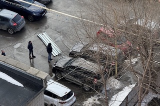 «Вчера на 112 позвонил управляющий нашего дома, оставил заявку об опасной ситуации. Сегодня ночью или утром один профлист слетел с долгостроя и приземлился на две машины, находящиеся по адресу 7-й Дегтярный проезд, 1. На долгострое много профлистов, но один держится на честном слове, в любую минуту может оторваться!» — сообщила горожанка, которая также предоставила фото и видео с места действия.