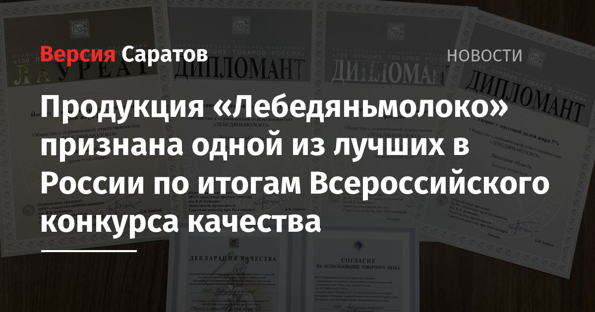 Четыре продукта предприятия «Лебедяньмолоко» стали победителями сначала регионального, а затем и федерального этапа конкурса качества «100 лучших товаров России». Высшей оценки удостоились: