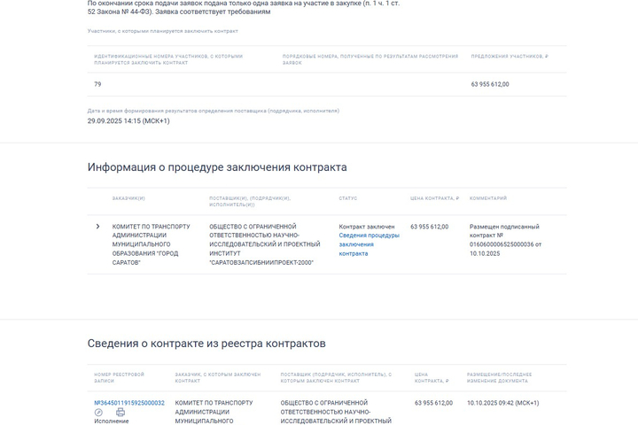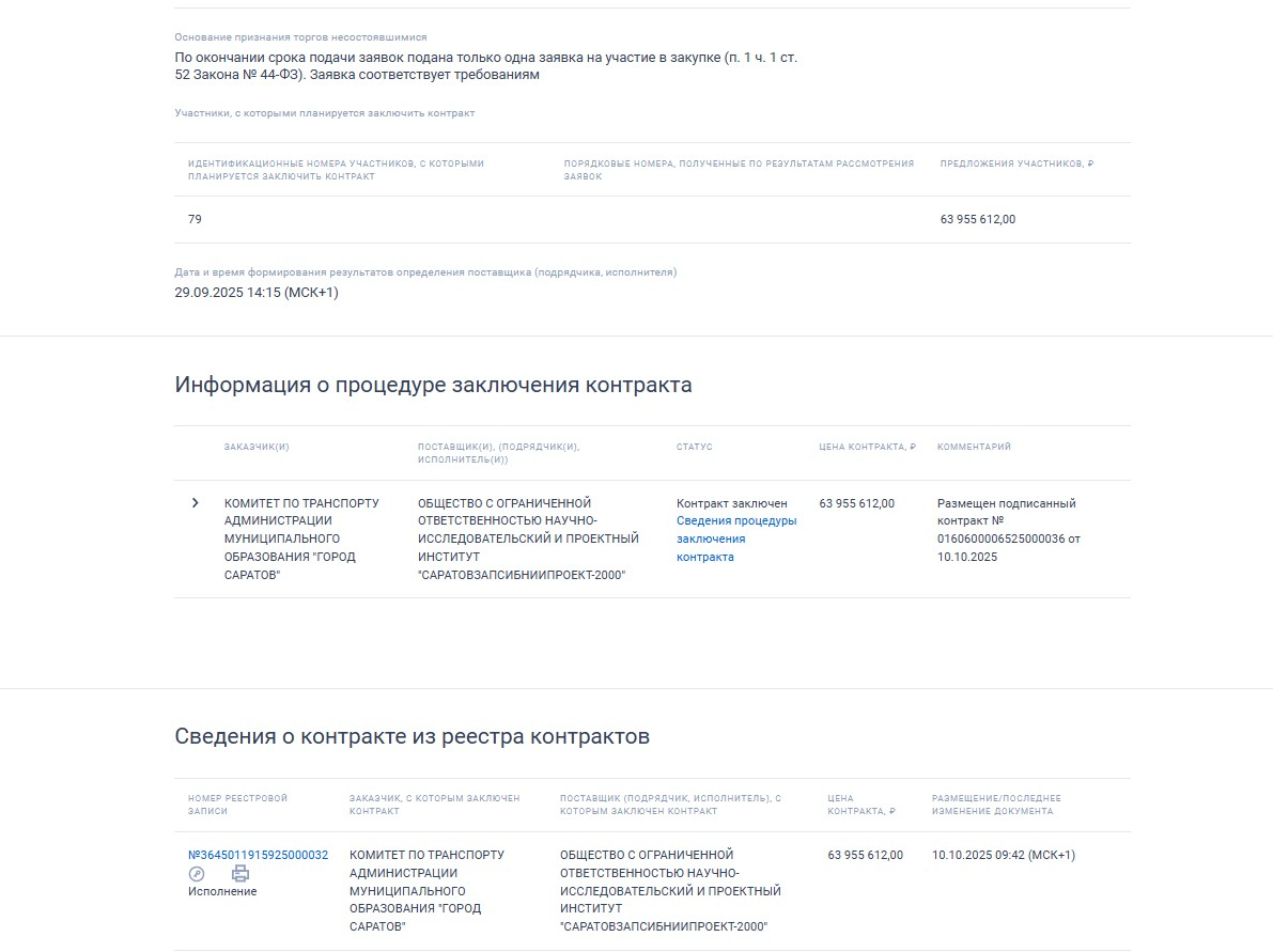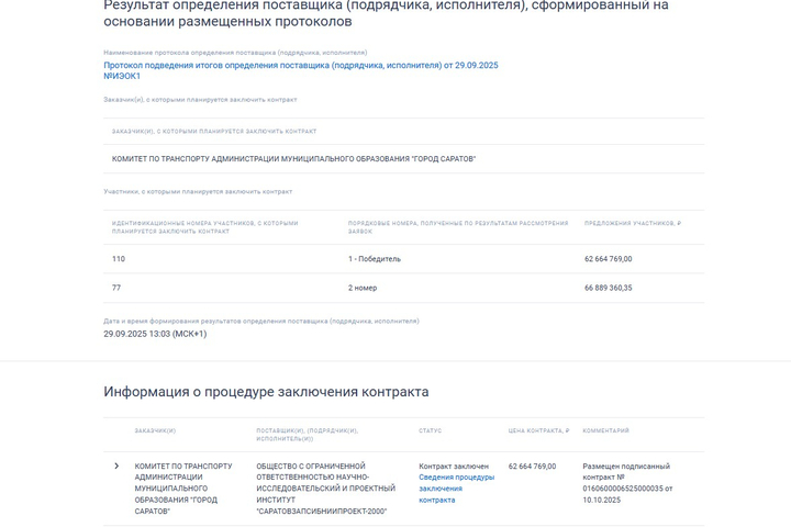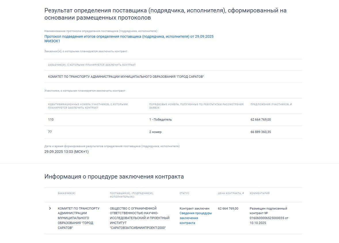 Для Заводского депо проект с заключением госэкспертизы должен быть готов до 31 августа 2026 года, для Кировского — к 12 октября 2026 года. Оба аукциона выиграло ООО Научно-исследовательский и проектный институт «Саратовзапсибниипроект-2000». Цена по контрактам была снижена до 63 955 612 и 62 664 769 рублей. То есть в ходе торгов было сэкономлено 15,64 миллиона рублей.
