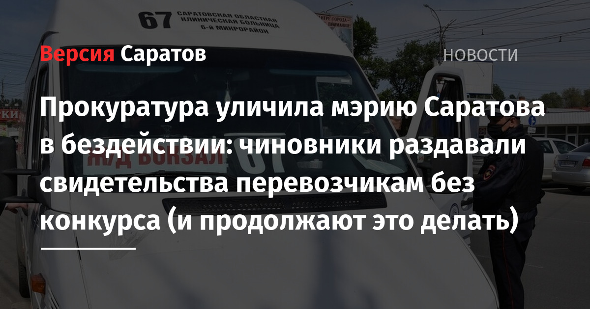 «В нарушение 30-ти дневного срока комитетом по транспорту не организовано проведение открытого конкурса по выдаче свидетельств на осуществление перевозок по вышеуказанным маршрутам. В результате длительного бездействия муниципалитета, субъекты предпринимательской деятельности, необоснованно получили преимущество по сравнению с другими хозяйствующими субъектами, в связи с длительным непроведением конкурсных процедур», — отметили в прокуратуре Саратовской области.