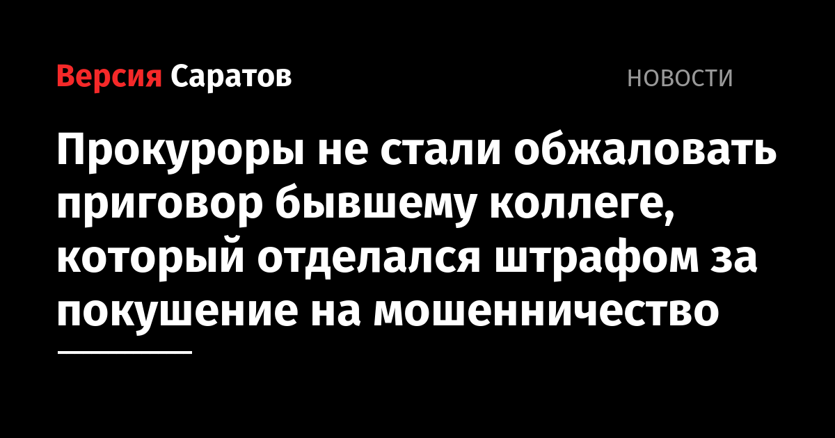 Прокуратура Саратовской области не стала обжаловать приговор бывшему помощнику Пугачевского межрайонного прокурора Евгению Дынину и его брату — Дмитрию, которых признали виновными в покушении на мошенничество. Информация размещена в картотеке дела.