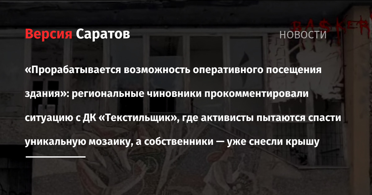 Чтобы узнать, планируется ли какой-либо экспертный осмотр «Текстильщика», корреспондент ИА «Версия-Саратов» обратился за комментарием в комитет культурного наследия Саратовской области.