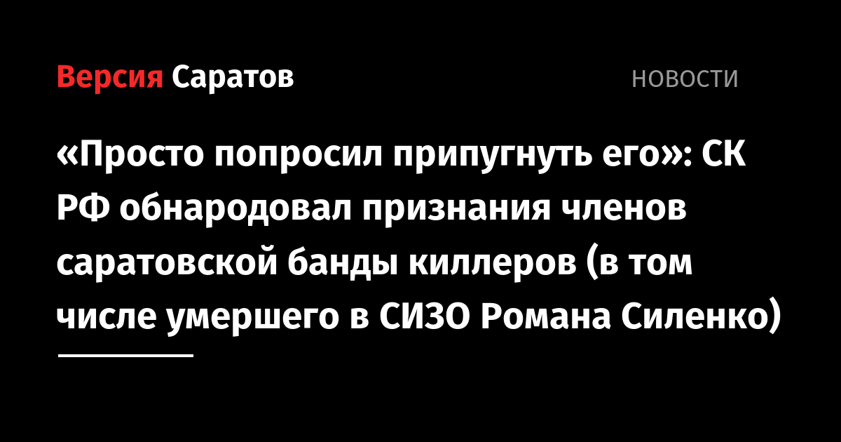 Следственный комитет РФ обнародовал видеозаписи следственных действий с участием Романа Силенко, Алексея Клусова и Юлии Быстровой. Все они были членами саратовской банды киллеров, которым сегодня, 21 января, Саратовский областной суд вынес приговор. Организатор банды — Роман Силенко — скончался в СИЗО вскоре после задержания, в апреле 2018 года.