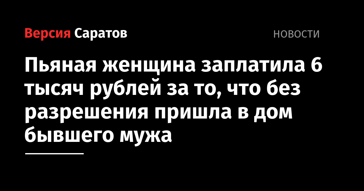 Пьяная женщина заплатила 6 тысяч рублей за то, что без разрешения пришла в дом бывшего мужа