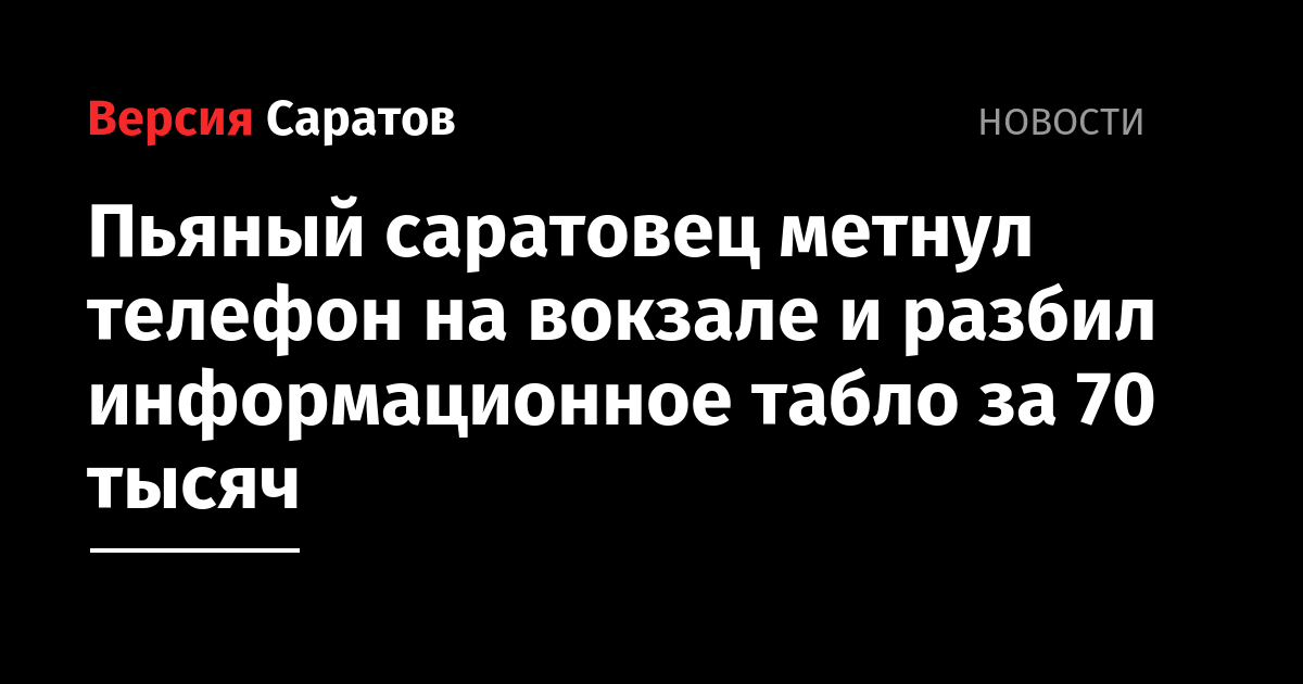 По данным ведомства, инцидент произошел в августе 2024 года в здании железнодорожного вокзала Саратов-1. Нетрезвый мужчина из хулиганский побуждений бросил мобильный телефон в информационное табло, разбив его. ОАО «РЖД» причинен ущерб на сумму 69 972 рублей.