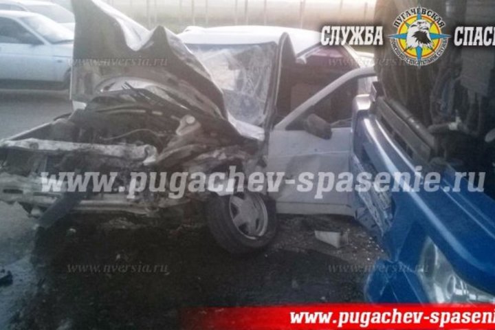 Вечером 1 мая в Пугачеве на перекрестке Революционного проспекта и улицы Маркса "десятка" врезалась в грузовик. Как сообщает местная служба спасения в своей группе в соцсети "ВКонтакте", прибывшие на место специалисты при помощи гидравлического инструмента извлекли из легковушки водителя и пассажира. Пострадавшим оказали первую помощь и передали их врачам "скорой помощи".