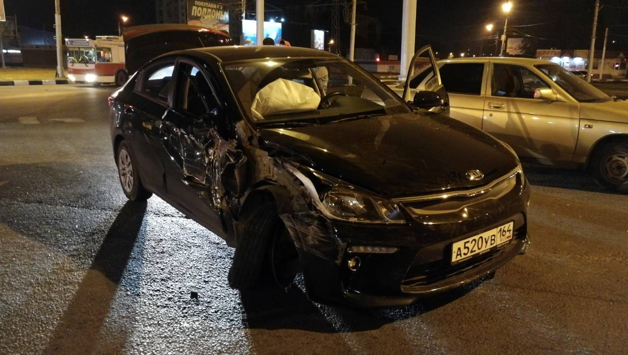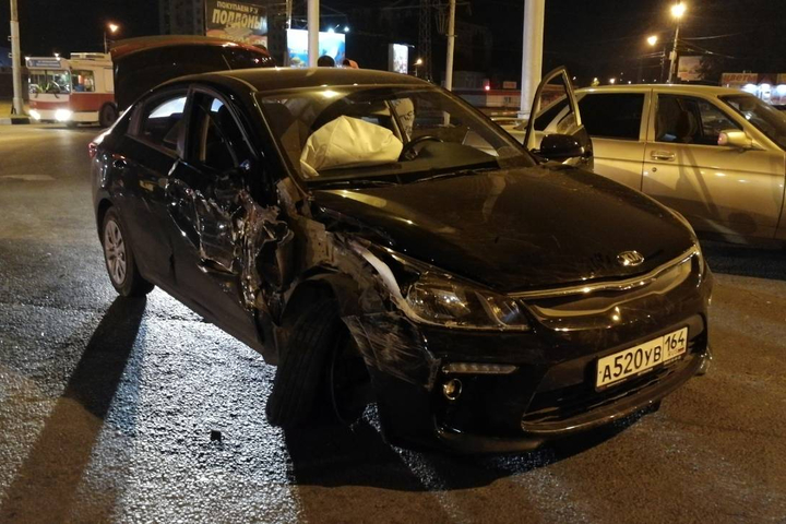 Сегодня ночью на въезде в Саратов со стороны Вольского тракта пьяный водитель устроил ДТП. На кольцевой развязке 42-летний водитель KIA Rio протаранил троллейбус маршрута № 10, который разворачивался на конечной остановке.