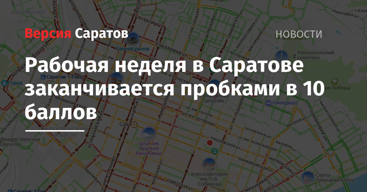 Рабочая неделя в Саратове заканчивается заторами. Согласно сервису «Яндекс. Карты», пробки на дорогах областного центра оцениваются в максимальные 10 баллов.