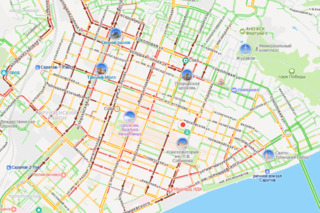 В бордовый и красный цвета окрашен весь центр. Сложно проехать на Большой Горной, Соколовой, Рахова, Московской, Чапаева, Горького, Астраханской. Ухудшается ситуация и на других улицах.