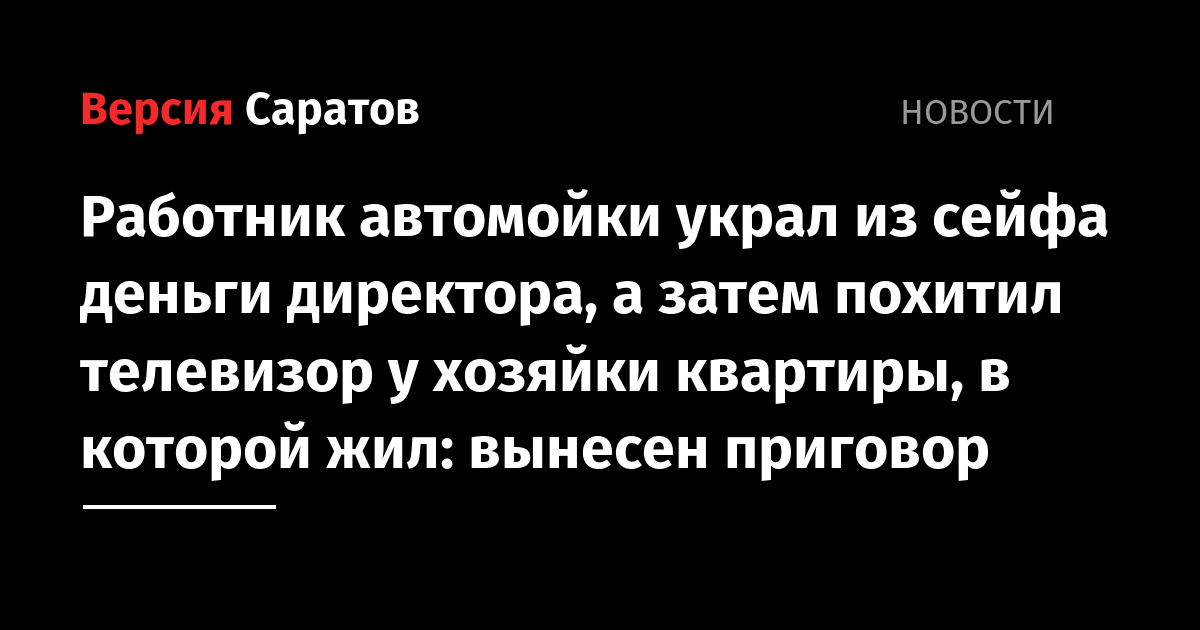Работник автомойки украл из сейфа деньги директора, а затем похитил телевизор у хозяйки квартиры, в которой жил: вынесен приговор