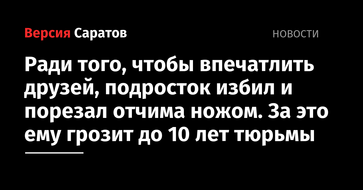 По информации ведомства, инцидент произошел 23 ноября 2018 года в одном из поселков Аркадакского района. В этот день школьник поссорился с сожителем матери, а после встретил его пьяным в магазине. Юноша захотел произвести впечатление на своих друзей и предложил отчиму пойти за магазин разобраться. Там пасынок толкнул мужчину в область груди, а затем ударил его в грудь и по голове. После этого подросток достал нож-бабочку и трижды ударил отчима в бок. После этого нападавший ушел вместе с друзьями, по пути выкинув нож.