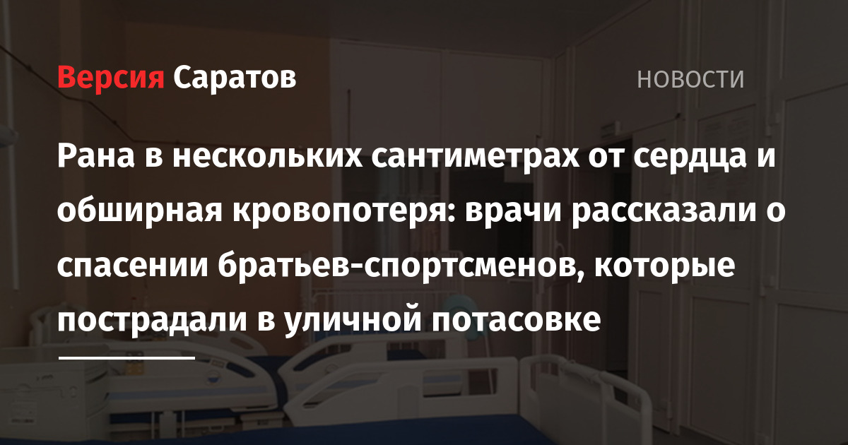 Напомним, 27 сентября в Заводском районе Саратова госпитализировали двух 19-летних студентов. Как сообщали в региональном ГУ МВД, ножевые ранения молодые люди получили на улице после конфликта с 22-летним молодым человеком. Позднее выяснилось, что пострадавшими являются греко-римские борцы, Рафаэль и Рамис Вергазовы.