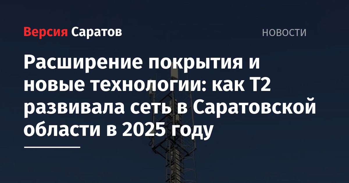 T2, российский оператор мобильной связи, подвел итоги развития сетевой инфраструктуры в Саратовской области в 2025 году. Компания расширила зону покрытия сети, обеспечив связью еще 63 малых поселения, провела рефарминг и модернизировала 15% базовых станций в регионе. Также саратовским клиентам T2 стала доступна технология VoWiFi — она позволяет совершать звонки по сети Wi-Fi там, где мобильная связь может быть недоступна.