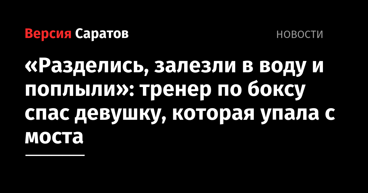 «Разделись, залезли в воду и поплыли»: тренер по боксу спас девушку, которая упала с моста
