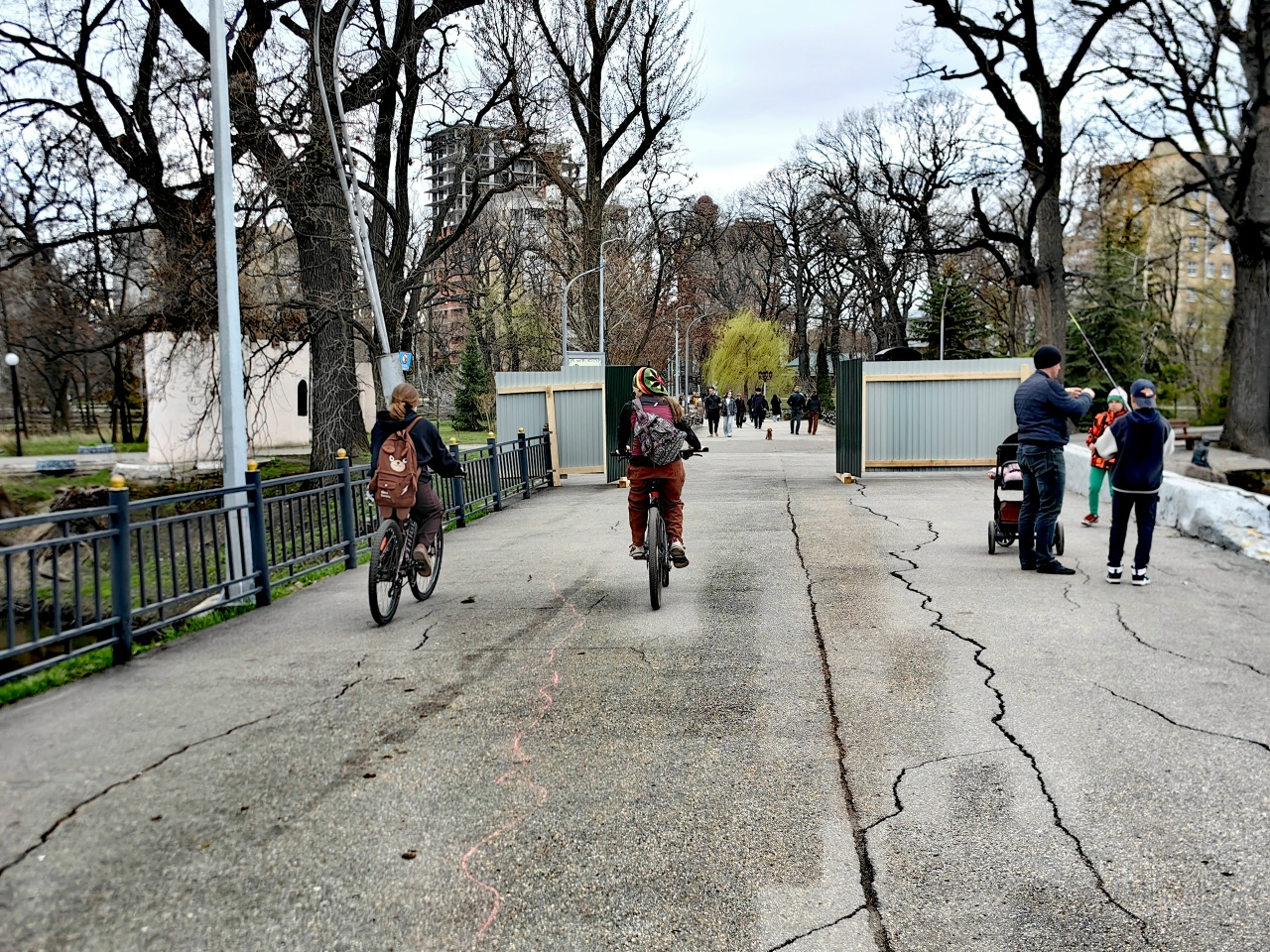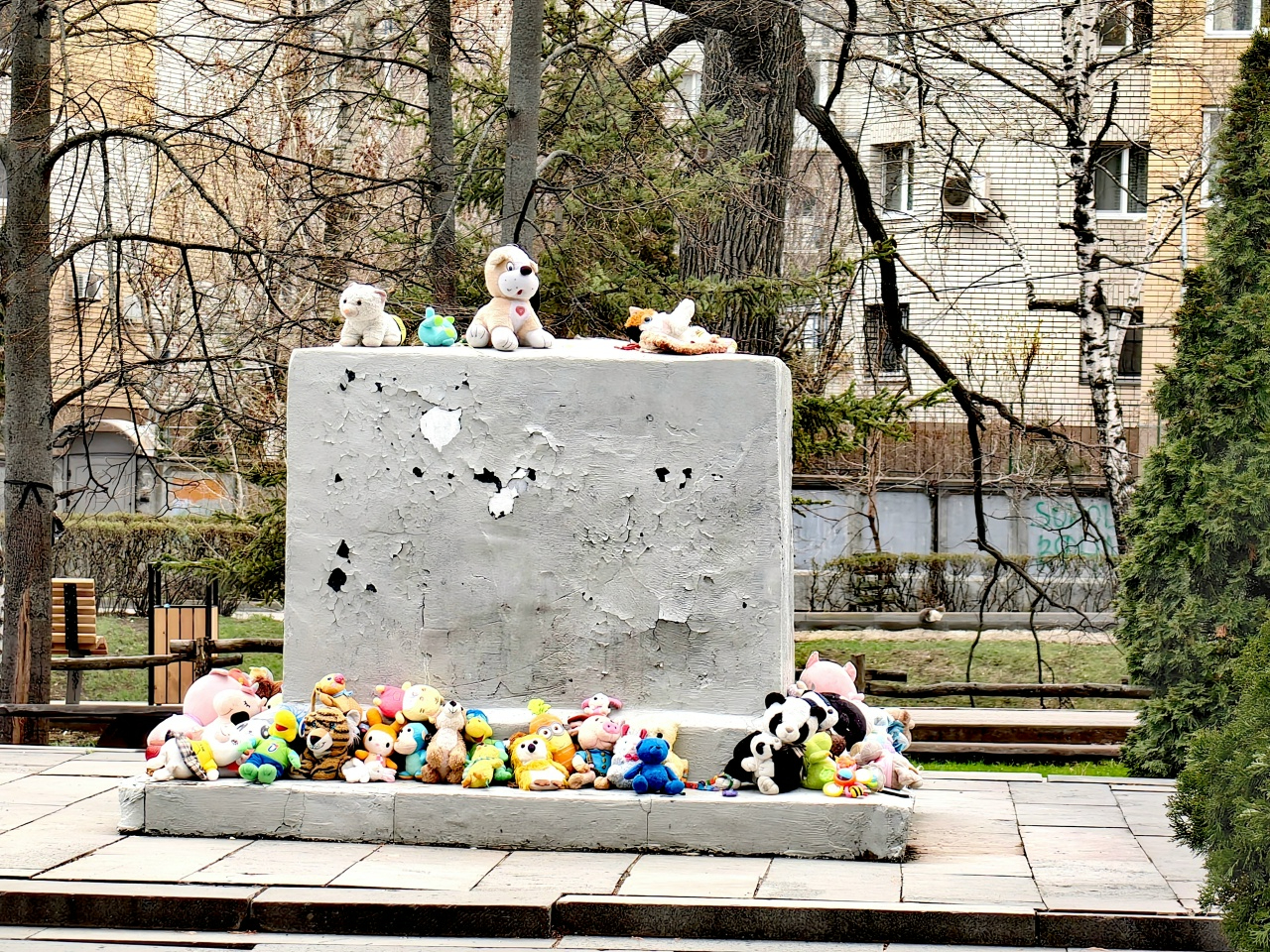 Разруха наблюдается там, где ранее размещались различные сказочные скульптуры, демонтированные по требованию мэрии. Облезлый постамент на месте смертельного ЧП с маленькой девочкой, произошедшего в ходе проведения праздника, организованного администрацией города в Горпарке в августе 2025 года, обложен мягкими игрушками.