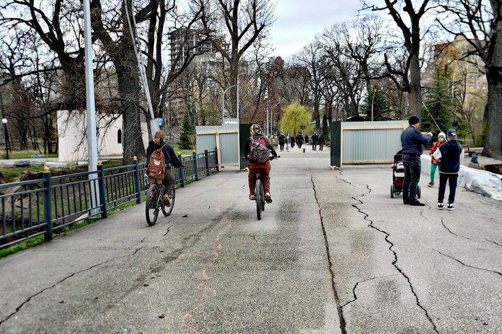 Вчера, 12 апреля, в последний день проститься с парком таким, каким он встречал горожан на протяжении десятилетий, пришли сотни семей с детьми. Оказалось, что при новом правообладателе территории — комитете дорожного хозяйства и благоустройства (председатель Андрей Бондарев) — парк выглядит запущено. Причём не только в тех местах, где запланирована реконструкция.