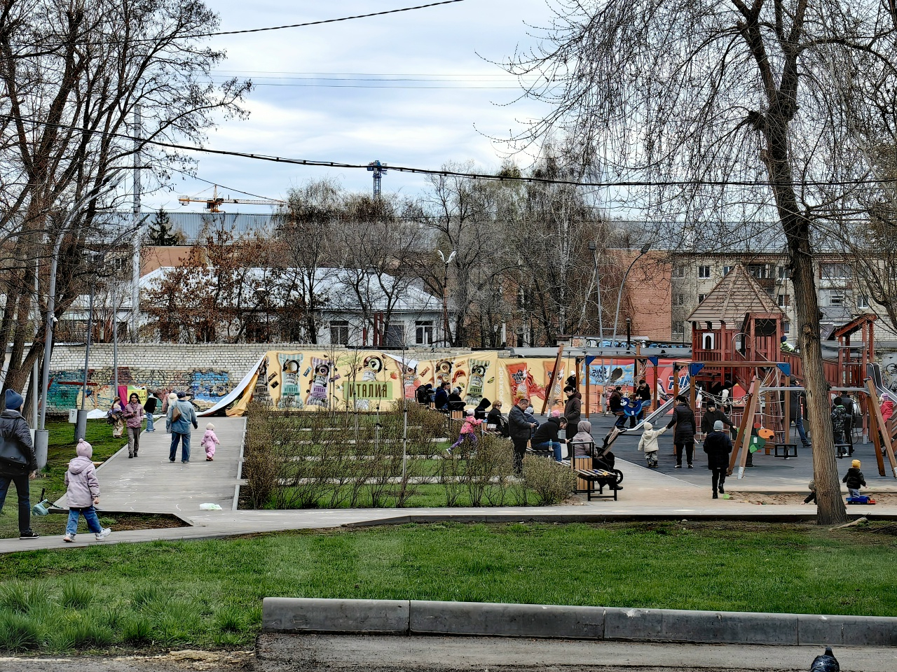 Вчера попрощаться с одной из лучших в Саратове игровых зон пришли горожане с детьми. Оказалось, что при новых правилах в парке стало небезопасно находиться с детьми — тут теперь легко встретить людей с собаками, а также проносящихся мимо велосипедистов и самокатчиков. Пространство напротив игровой зоны, судя по всему, также никто больше не контролирует — здесь по крышам гаражей лазают маленькие дети, забирающиеся на высоту по обрубкам деревьев Горпарка. Осознают ли чиновники ответственность за их жизни — непонятно.