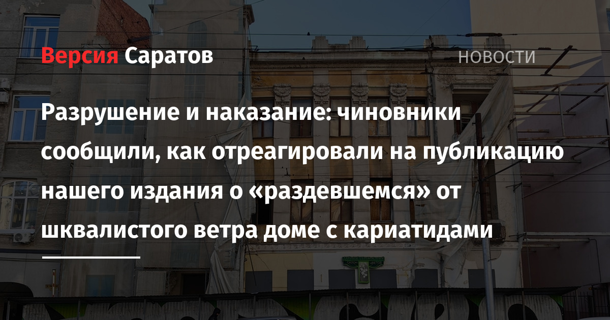 - Консервация уровня ноль: шторм сорвал фальшфасад с известного саратовского дома с кариатидами (всё печально)