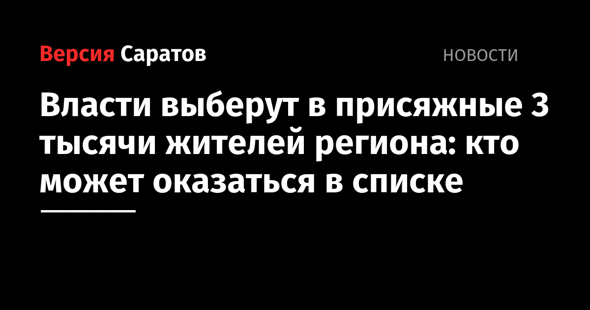 В общий список во всем регионе войдут 3 тысячи человек. Из них 1 тысяча — из Саратова, 392 человека — из Энгельсского района, 285 — из Балаковского района и так далее. Меньше всего присяжных будет из Шихан и Михайловского — по 5 человек. Кроме того, 500 саратовцев попадут в запасной список.