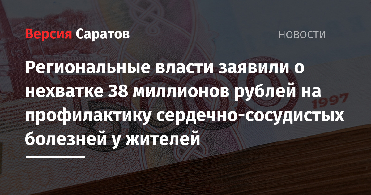 Региональные власти заявили о нехватке 38 миллионов рублей на профилактику сердечно-сосудистых болезней у жителей