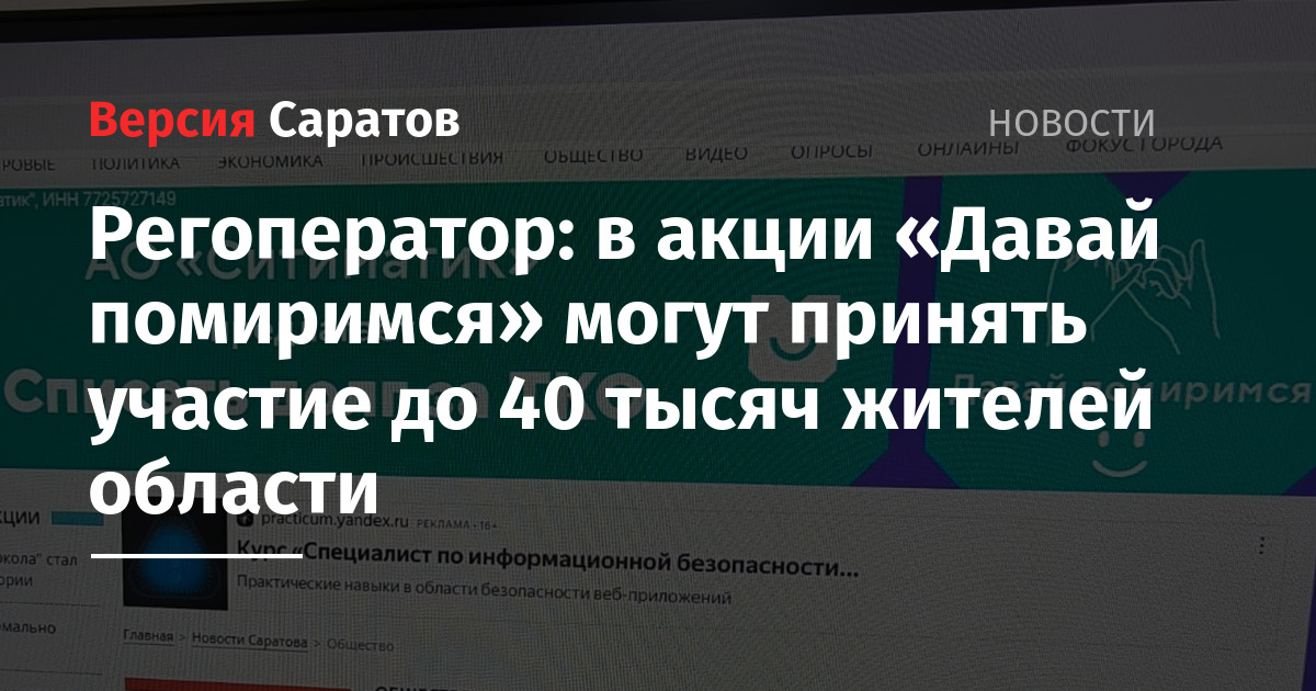 С подробной информацией о правилах участия в акции «Давай помиримся» можно ознакомиться на официальном сайте Саратовского филиала АО «Ситиматик» или получить разъяснения у специалистов контакт-центра по телефону: 8 (8452) 25-64-90.