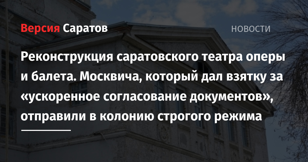 - Реконструкция театра оперы и балета. В Саратове будут судить москвича, который дал взятку за «ускоренное согласование документов»