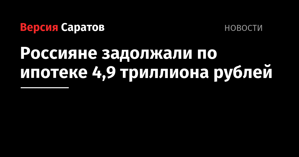Совокупная задолженность по ипотеке в России составляет 4,9 триллиона рублей.