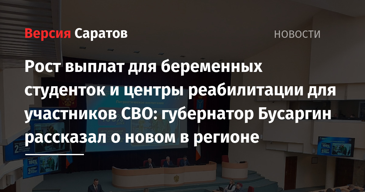 В ходе своего выступления глава региона анонсировал открытие новых центров реабилитации для участников СВО. Они должны будут появиться в Энгельсском, Вольском, Хвалынском и Пугачёвском районах на базе уже существующих учреждений.
