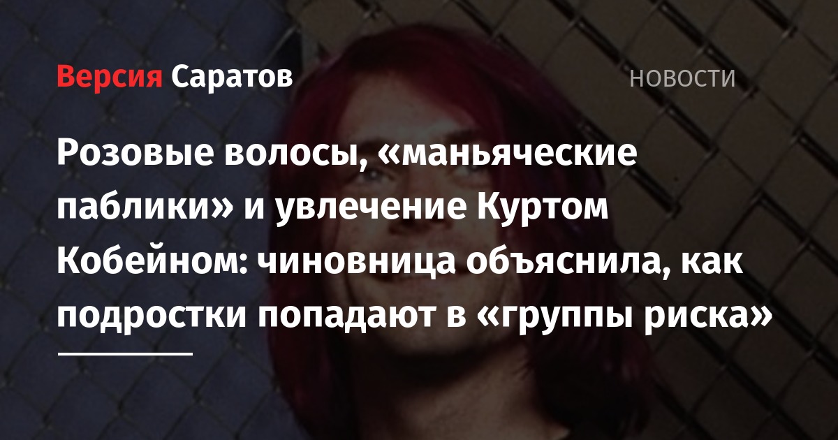 К маркеру значительно выраженных депрессивно-околосуицидальных настроений чиновница отнесла повышенный интерес к песням и личности лидера группы Nirvana Курта Кобейна, который покончил жизнь самоубийством.