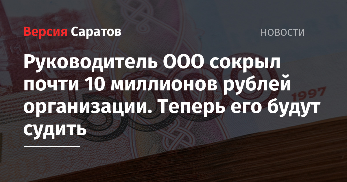 В Саратове будут судить 49-летнего руководителя общества с ограниченной ответственностью. Как сообщили в прокуратуре области, его обвиняют в совершении преступления, предусмотренного ч. 1 ст. 199.2 УК РФ (Сокрытие денег организации, за счёт которых должно быть произведено взыскание недоимки по налогам, сборам, страховым взносам в крупном размере).