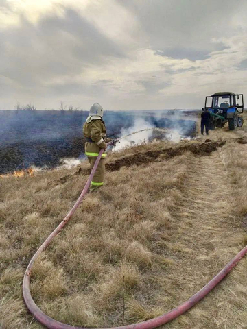 По информации ведомства, в селе Новорасляевка загорелась сухая трава. Огонь распространился на площади в гектар. Возникла угроза для расположенной поблизости железнодорожной полосы.