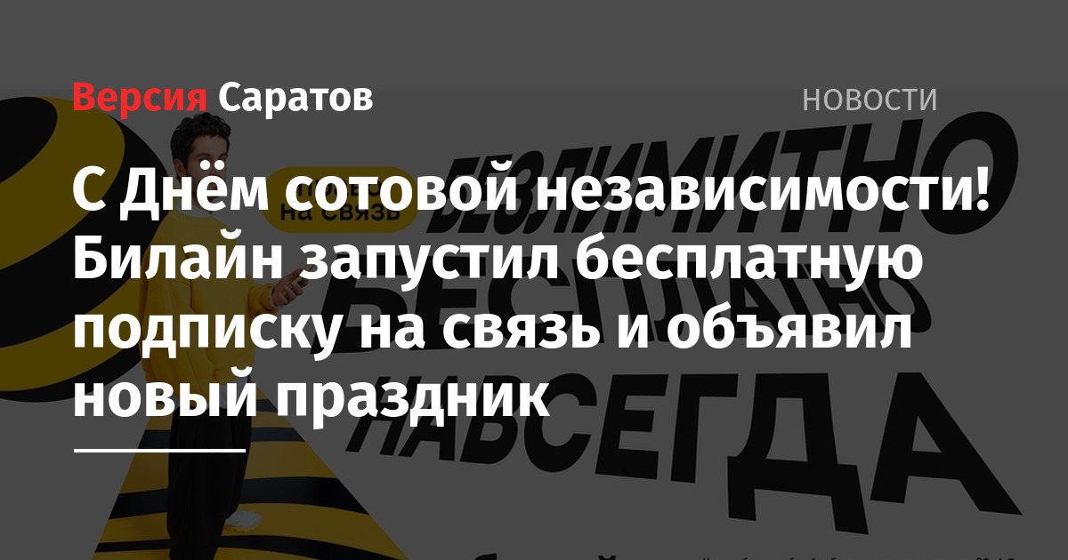 Билайн объявил о создании нового неформального праздника — Дня сотовой независимости. Он символизирует переход к новой эпохе мобильной связи, где базовая потребность людей в общении обеспечивается доступным способом без ежемесячных платежей.