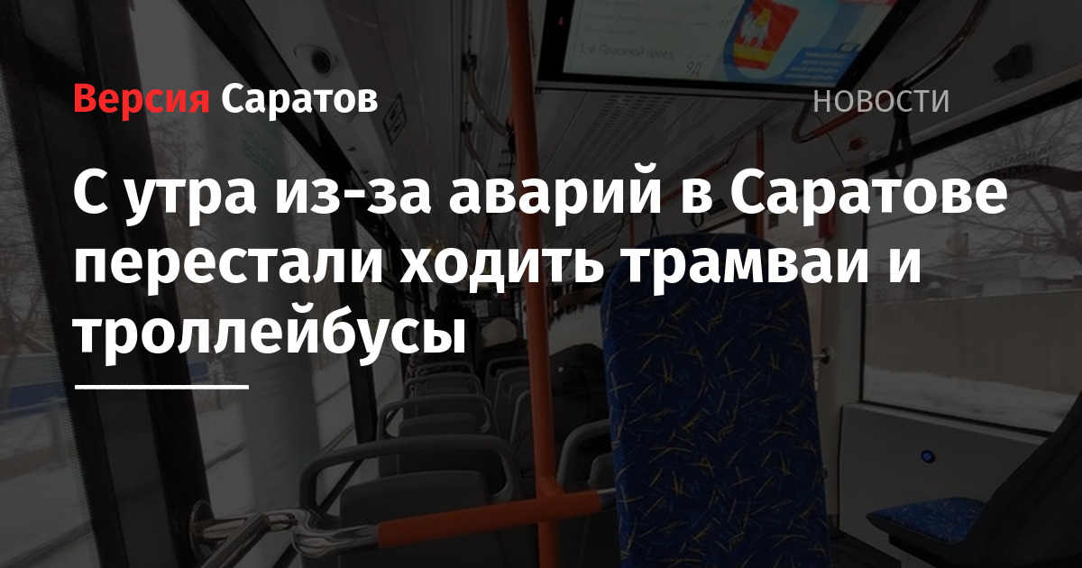 Сегодня утром, 24 февраля, из-за аварий в Саратове остановился электротранспорт. Об этом сообщили в Telegram-канале «Саратов транспортный», закреплённом за администрацией областного центра.