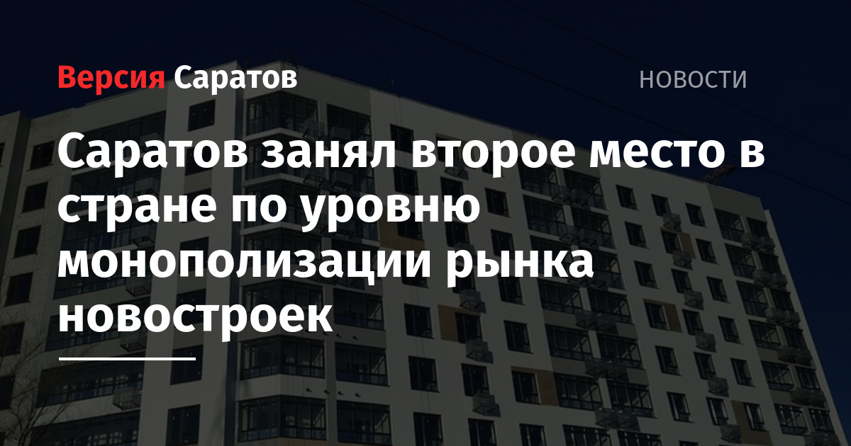 Саратов занял второе место в стране по уровню монополизации рынка новостроек