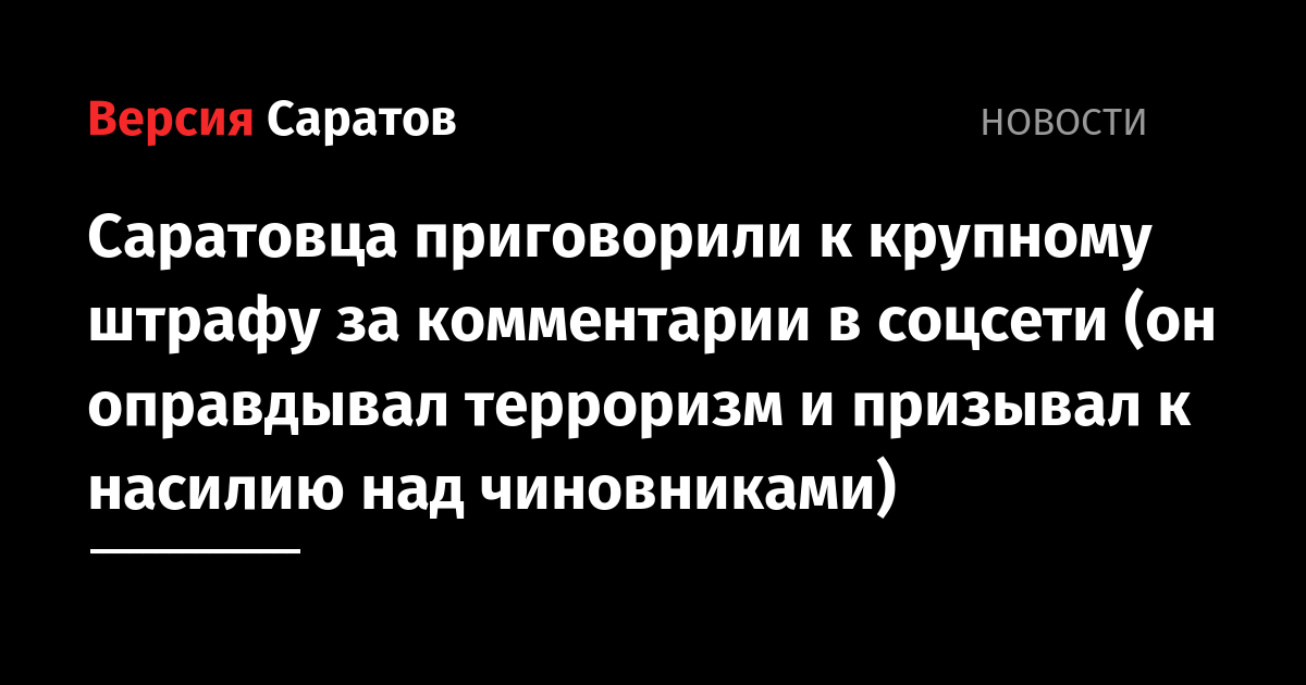 За призывы к экстремизму и оправдание терроризма жителя Саратова приговорили к штрафу в размере 350 тысяч рублей. Приговор вынес Центральный окружной военный суд, который находится в Самаре.