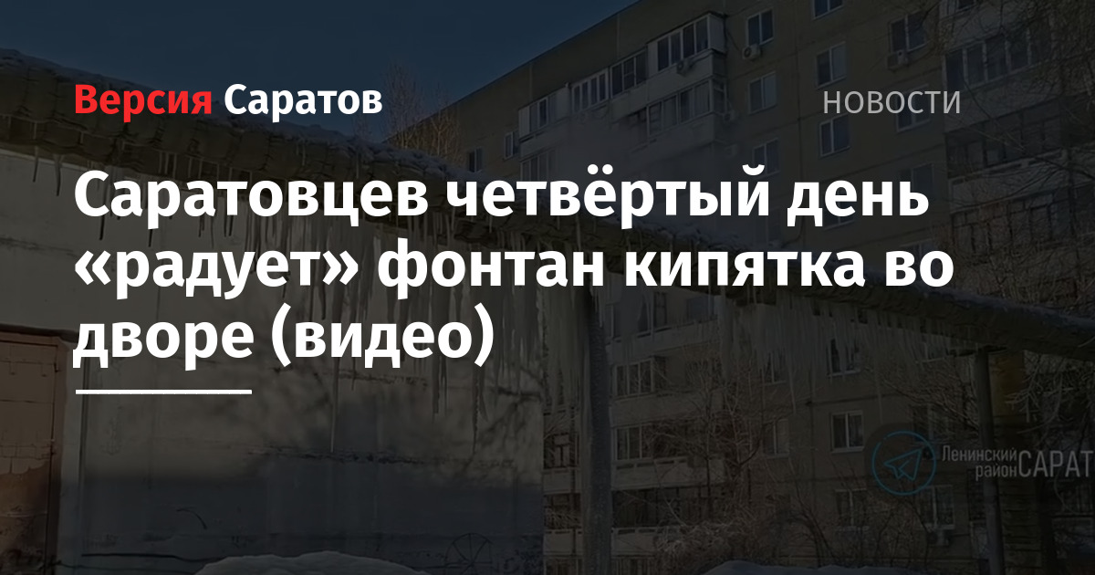 Житель Ленинского района (глава Артём Курочкин) Саратова пожаловался на то, что его двор уже несколько дней заливает горячей водой. Об этом он рассказал в Telegram-канале «Саратов Ленинский район», где также было выложено видео. По словам автора, оно сделано возле дома по адресу Уфимцева, 1.