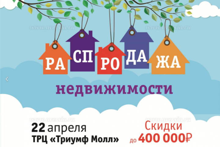 По словам организаторов, на “Распродаже недвижимости” будет представлено более 8 000 квартир на вторичном и первичном рынке, в том числе и со скидками до 400 000 рублей. На сэкономленные средства у жителей появится возможность сделать ремонт в новой квартире, купить мебель или отправиться в отпуск.