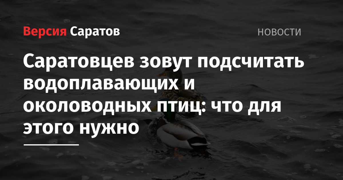 Жителей Саратова зовут считать водоплавающих и околоводных птиц. Об этом сообщили в министерстве природных ресурсов и экологии области.