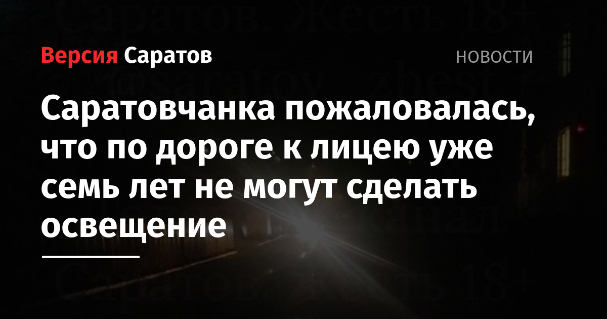 Жительница Октябрьского района Саратова пожаловалась длительное отсутствие уличного освещения на дороге к лицею № 2, который расположен по адресу 1-я линия, 9/4. Сообщение об этом было опубликовано в Telegram-канале «Саратов. Жесть 18+».