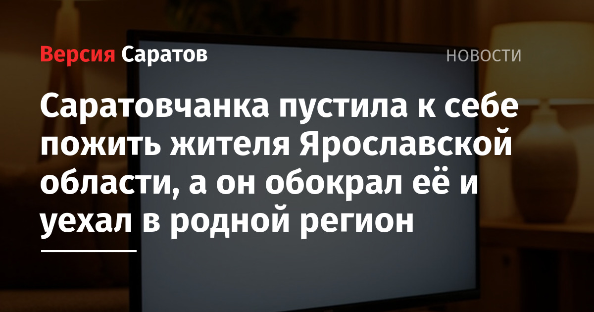 Саратовчанка пустила к себе пожить жителя Ярославской области, а он обокрал её и уехал в родной регион