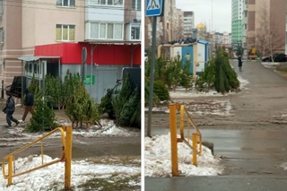 По словам горожанки, ёлки выставили на продажу возле домов № 7 и 13 на Лисина. На предоставленных ей кадрах видно, что некоторые деревья примотали к дорожному знаку и к столбам. Установленное для официальных ёлочных базаров новогоднее оформление отсутствует.