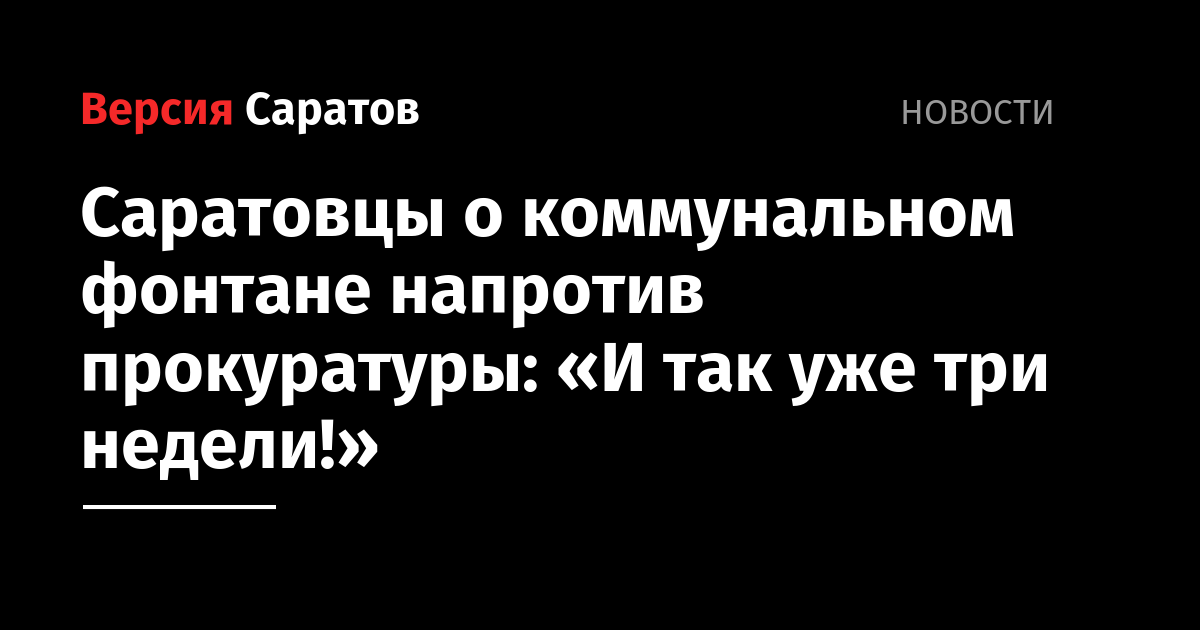 Напомним, в начале июня саратовцы жаловались на коммунальный ручей на улице Чайковского , который бил посреди автомобильной дороги. На Чапаева бил «родник», который бурным потоком спускался с тротуара на проезжую часть, в пятницу жильцы домов на Кузнечной пожаловались, что по их улице из дыры в асфальте уже больше недели течет вода.