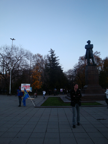Сегодня у памятника Чернышевскому прошел одиночный пикет и сбор подписей под обращением в адрес Президента РФ Дмитрия Медведева. Поводом для этой акции стало нападение на журналиста газеты «Коммерсантъ» Олега Кашина, которое произошло возле его дома 5 ноября. Напомним, журналист получил многочисленные переломы и сейчас находится в состоянии искусственной комы.