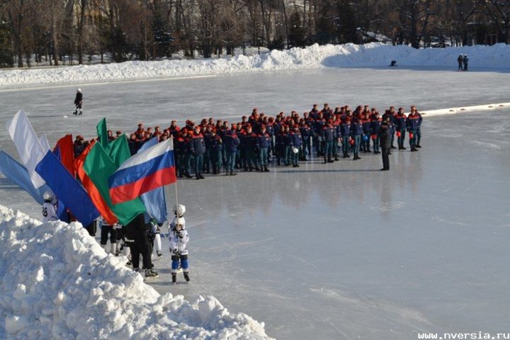 На стадионе "Динамо" в Саратове состоялся флешмоб, организованный региональным управлением МЧС. Мероприятие приурочили к 25-летию создания российского Министерства по чрезвычайным ситуациям. Студенты техникума им. Ю.А. Гагарина провели на льду небольшую зарядку. Затем они выстроились таким образом, чтобы из их тел складывались буквы "МЧС" и цифра "25". В центре действа находилось сердце, сложенное из двух пожарных шлангов, а вокруг с флагами катались юные саратовские хоккеисты. Флешмоб завершился дружеским матчем по хоккею с мячом между маленькими спортсменами и представителями ГУ МЧС по Саратовской области.