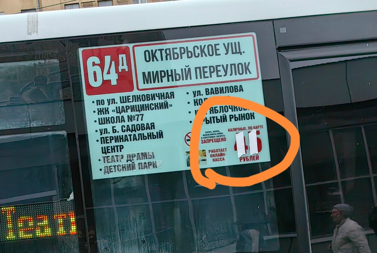 Они потребовали проверить, почему все это время с них брали 45 рублей на проезд и если перевозчик незаконно брал с них по повышенному тарифу — наказать его. Сегодня на маршрутке, по словам саратовцев, старую цену в 45 рублей уже заклеили. «То ли новость по 39 узнали, то ли готовятся напечатать 48», — добавили наши читатели.