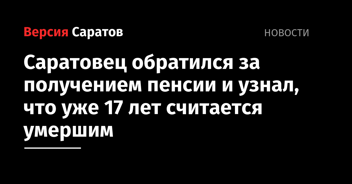 Установлено, что заявитель обратился в отделение Пенсионного фонда РФ в Саратове, чтобы оформить пенсию по старости. Там мужчине сообщили, что с 2005 года Фрунзенским районным судом Ярославля по заявлению бывшей супруги заявителя он признан умершим.